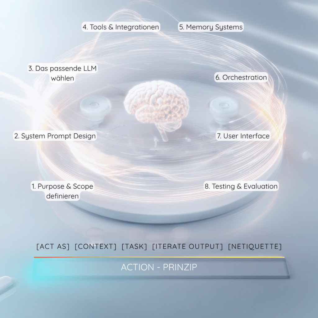 Das ACTION-Prinzip sorgt für klare, reproduzierbare und qualitativ hochwertige Ergebnisse unabhängig davon, ob man mit ChatGPT, Claude oder einem internen LLM arbeitet.